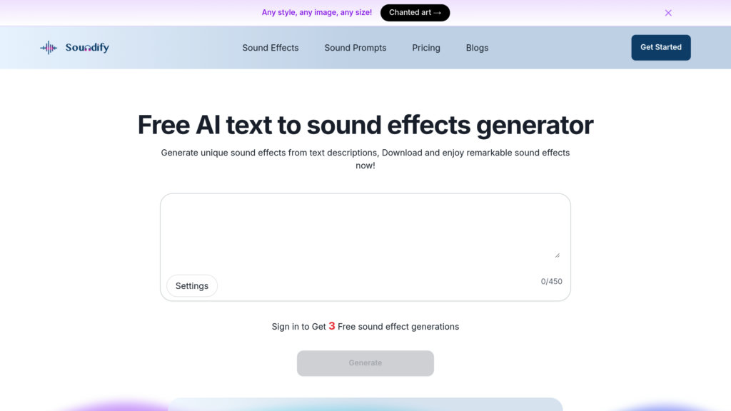 Plataforma alimentada por IA que gera efeitos sonoros únicos e personalizáveis a partir de descrições de texto em tempo real.