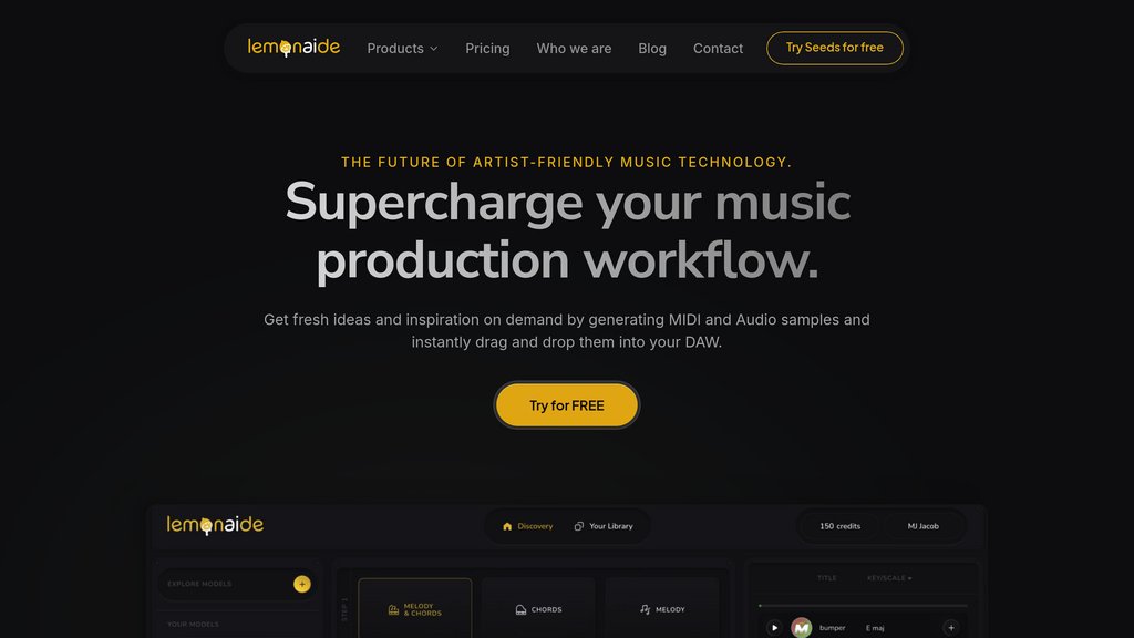 Lemonaide es una plataforma sofisticada de generación de melodías que utiliza algoritmos avanzados entrenados por productores nominados al Grammy y multiplatino para crear contenido musical único. La plataforma ofrece dos líneas de productos distintas: Seeds para generación de melodías libres de regalías y Collab Club con modelos personalizados basados en las firmas musicales de productores galardonados. Disponible como aplicaciones para Mac, Windows y web, Lemonaide se integra perfectamente con las principales DAWs y proporciona archivos MIDI y loops de audio de alta calidad. La plataforma ha ayudado a iniciar más de 70.000 canciones y atiende a productores musicales desde principiantes hasta ganadores de premios Grammy.