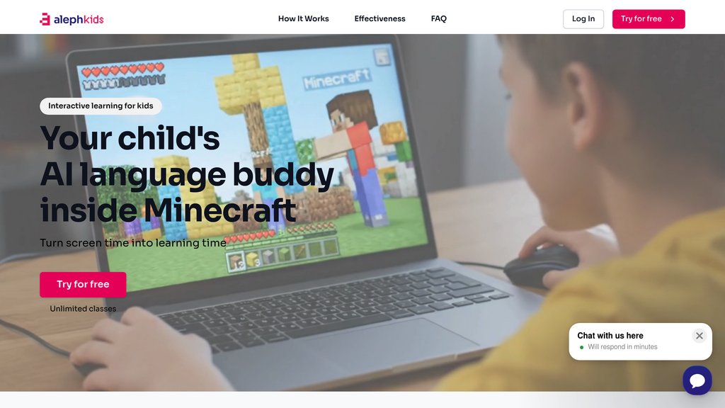 Aleph Kids is a language learning platform that integrates AI companions into popular gaming environments where children already spend their time. Rather than isolating language learning into traditional classroom settings, Aleph Kids brings AI agents named Andy and Annie directly into games like Minecraft and Roblox, enabling children to naturally acquire new language skills through immersive gameplay interactions. The platform combines real-time conversation, adaptive learning pathways, and gamified scenarios to make language acquisition feel like entertainment rather than formal instruction. Parents can monitor their child's progress through detailed vocabulary tracking and progress reports, while children benefit from a private, moderated learning environment free from random online interactions.