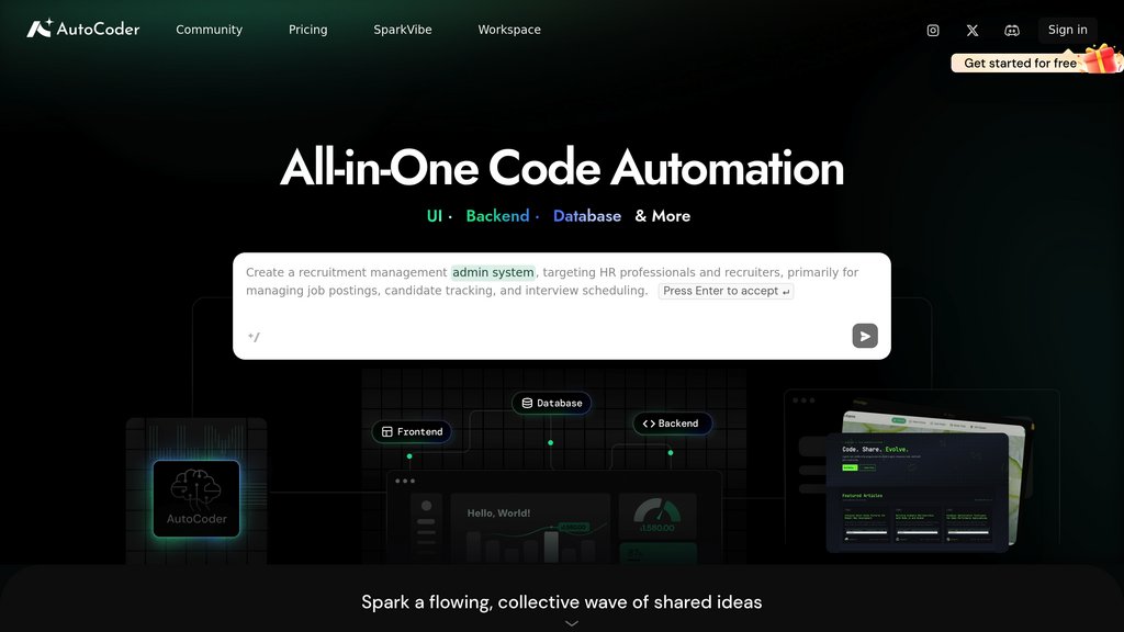 Autocoder.cc is an innovative development platform that streamlines the creation of full-stack web applications through conversational interface. Unlike traditional no-code builders that require external database services, Autocoder integrates frontend, backend, and database generation into a unified experience. Users describe their application requirements in natural language, and the platform leverages a custom-built large language model to automatically generate production-ready code across all application layers. The platform features AWS-hosted databases, comprehensive security mechanisms, and multi-role user support, making it suitable for both rapid prototyping and real-world applications.