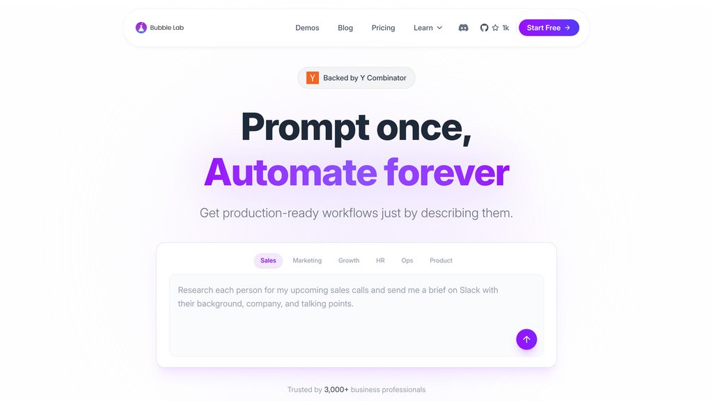 Bubble Lab is a developer-focused workflow automation platform that transforms conversational prompts into clean, exportable TypeScript code. Unlike traditional visual workflow builders that lock users into proprietary JSON formats, Bubble Lab provides complete code ownership and transparency. The platform features Bubble Studio, a visual editor with side-by-side execution logs, and allows developers to seamlessly migrate from tools like n8n. With built-in AI assistance through Pearl, users can describe workflows in plain language and instantly generate working automations using composable bubbles (integrations, tools, and logic nodes).