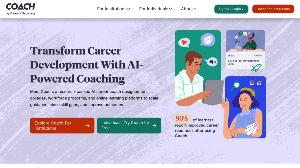AI-powered career coaching platform designed to scale personalized career guidance for learners, institutions, and workforce programs.
