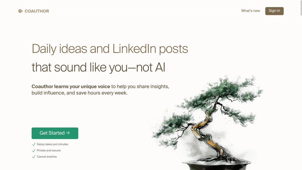 Coauthor is a specialized writing platform designed for busy professionals who want to build authentic influence on LinkedIn without investing countless hours in content creation. The platform learns each user's Professional Signature—their background, writing style, audience, and career goals—to generate personalized posts that genuinely sound like them rather than generic AI output. Using a Multi-Model AI approach that combines models from OpenAI, Anthropic, and Google Gemini, Coauthor creates posts that maintain authentic voice while dramatically reducing writing time. The platform goes beyond simple post generation by providing daily personalized content ideas tailored to the user's expertise and audience interests, fact-checking capabilities to ensure accuracy, custom image suggestions for each post, and continuous learning that improves with every user interaction and edit.
