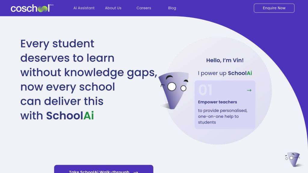 CoSchool is an advanced AI-enabled learning management system designed to empower schools by facilitating personalized learning experiences. It integrates AI-driven tools such as Vin, a 24/7 AI tutor, to assist students, support teachers in creating customized lesson plans, and provide school leaders with real-time analytics for data-driven decisions. The platform also fosters parent engagement to build a holistic view of each student's progress, bridging learning gaps and enhancing educational outcomes.
