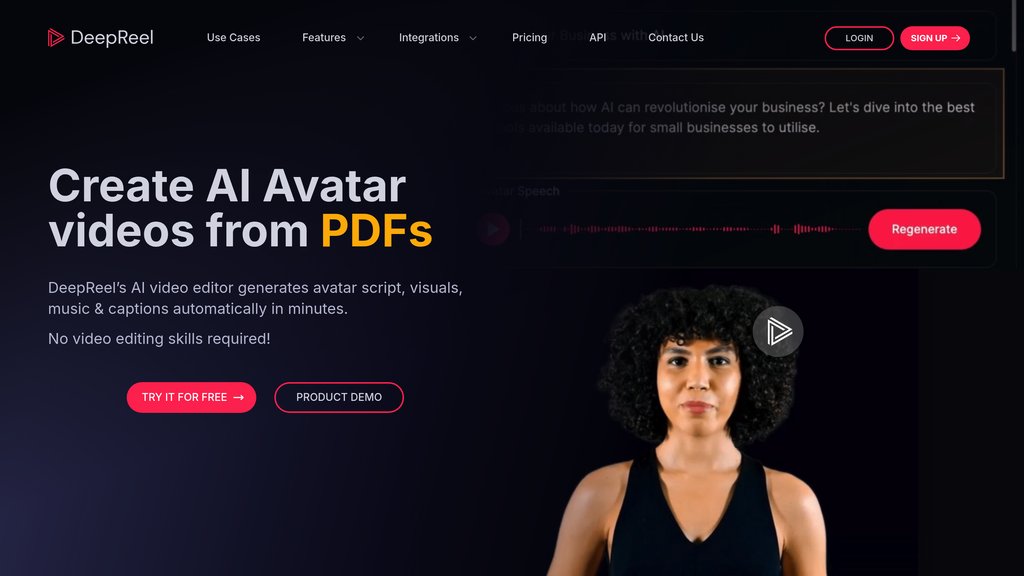 DeepReel simplifies video production by converting any text input into fully edited videos using custom or stock avatars, automatically generated scripts, relevant visuals, captions, and background music. It eliminates the need for filming, actors, or complex editing, allowing users to produce studio-quality videos quickly and cost-effectively. Supporting over 30 languages and offering personalized avatar creation with voice cloning, DeepReel caters to businesses and creators aiming to scale video content effortlessly across marketing, training, and communication channels.