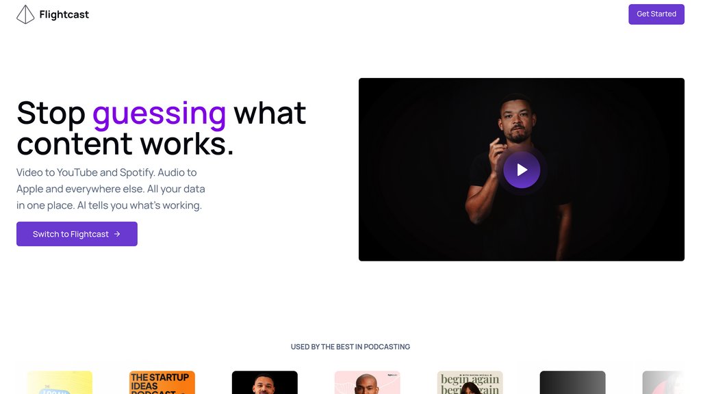 Flightcast is a podcast hosting and analytics platform designed for the modern video-first podcaster. It lets creators upload once and distribute simultaneously to YouTube, Spotify, Apple Podcasts, and all major RSS destinations. Beyond distribution, Flightcast consolidates multi-platform analytics into a single dashboard, offers automatic transcription, and provides intelligent tools for writing titles, descriptions, and chapters. Its AI Clips feature automatically identifies highlight moments, tests them on a side channel, and surfaces the top performers — removing the guesswork from content promotion.