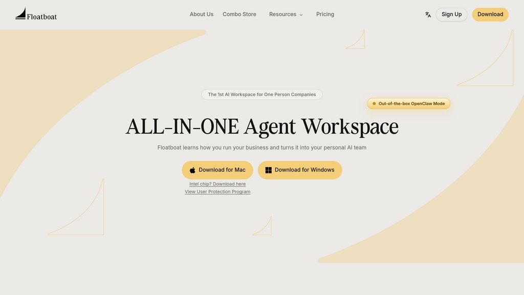 Floatboat is the first agent-native workspace designed specifically for solo entrepreneurs and one-person businesses. Built by AOE Tech Labs and launched in 2025, it transforms a single computer into a fully integrated work environment where local files, a built-in browser, and AI agents operate side by side without tab-switching or context loss. Its proprietary Floatboat Tacit Engine™ observes how you edit, decide, and execute tasks over time — capturing your personal judgment and business instincts. These learned patterns are then packaged into reusable 'Combo Skills' and on-demand 'Selfware', enabling one person to handle the workload of a team. The platform integrates with 3,500+ local and cloud tools and supports a Bring Your Own Key (BYOK) model for users who prefer using their own API keys.