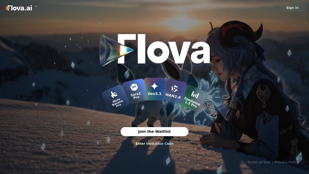 Flova AI is a comprehensive video creation platform that streamlines the entire production workflow from concept to final output. Rather than requiring users to switch between multiple tools and services, Flova integrates leading video generation models (including Sora 2, Kling, and Veo), image generators, music composition, and voiceover services into a single unified interface. The platform operates as an intelligent creative assistant that understands your ideas through conversational input, automatically translating them into professional-grade scripts, storyboards, and visuals while maintaining complete creative control throughout the production process.