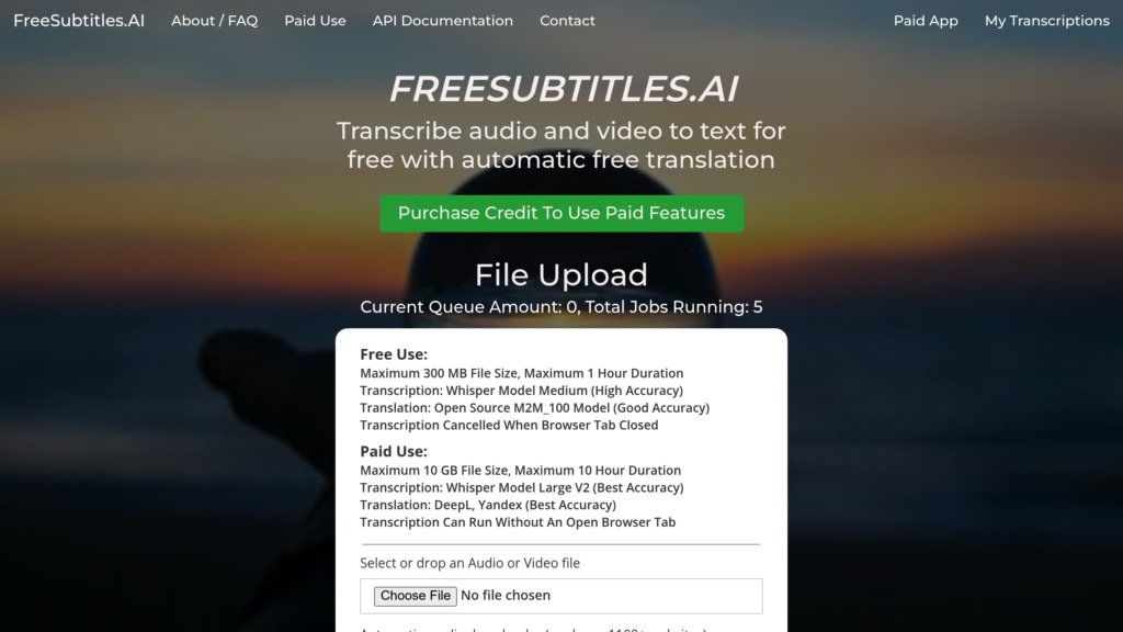 FreeSubtitles.AI is an accessible online service that enables users to transcribe audio and video content into text and generate subtitles. It supports a wide range of file formats and languages, offering both free and paid tiers to accommodate different project sizes and accuracy needs. The platform features a simple drag-and-drop interface, secure uploads, and outputs subtitles in popular formats such as SRT and VTT. Paid options provide enhanced transcription accuracy, larger file size limits, and advanced translation capabilities, making it suitable for creators, educators, and professionals seeking efficient speech-to-text conversion and multilingual subtitle generation.