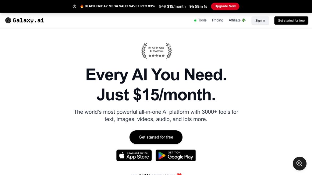 Galaxy.ai is an integrated AI platform that consolidates access to thousands of premium AI tools and services into a single, user-friendly interface. Instead of managing multiple subscriptions to different AI services, users gain comprehensive access to leading AI models and applications through one platform. The service supports a wide range of AI capabilities including advanced language models for chat and content generation, sophisticated image creation and editing tools, video generation and editing features, and specialized applications for design, coding, data analysis, and productivity optimization. By offering a unified subscription model, Galaxy.ai enables users to explore and leverage diverse AI technologies without the complexity and expense of maintaining separate accounts across multiple platforms.