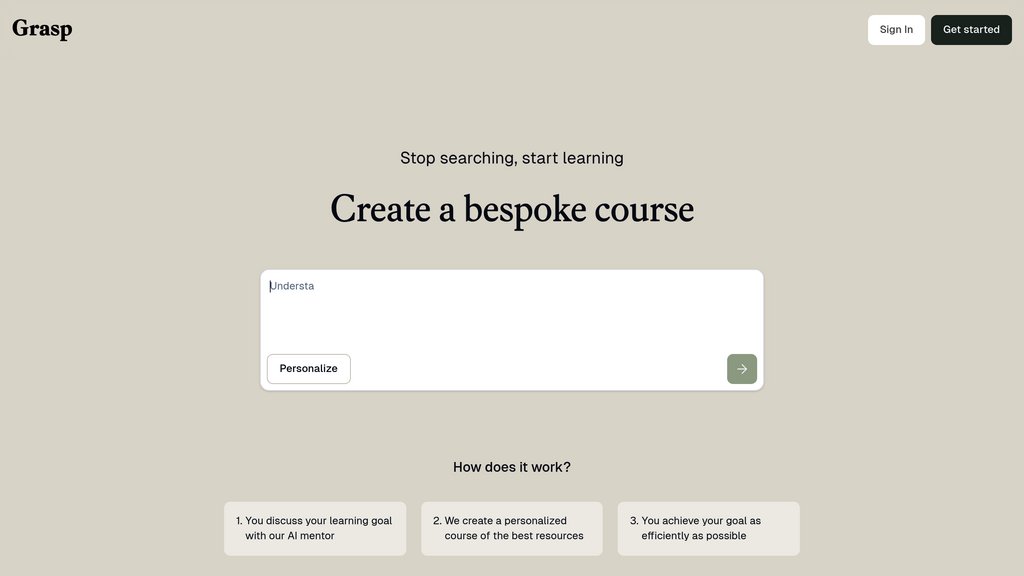 Grasp is an online learning platform founded by former Revolut employees Ed Matthews and Jacob Sidorov that addresses the friction points of adult self-learning. The platform leverages an AI mentor to discuss learning goals with users and automatically curates personalized courses from high-quality educational resources across the web. Rather than forcing learners to wade through countless tutorials and articles, Grasp assembles optimal learning paths tailored to individual needs and skill levels, starting with modern vocational skills like programming and expanding to broader knowledge domains.