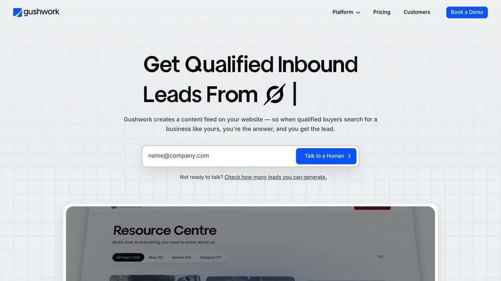 Gushwork is a fully managed content and lead generation service built for B2B businesses. It deploys a swarm of eight specialized AI agents — covering memory, research, strategy, content & design, development, publishing, backlinking, and optimization — to research buyer intent, create optimized landing pages and guides, build backlinks, and deliver qualified inbound leads within 90–150 days. Content is published to a dedicated AI-first CMS subdirectory on your own domain, structured specifically for both Google crawlers and large language models like ChatGPT, Claude, and Perplexity.