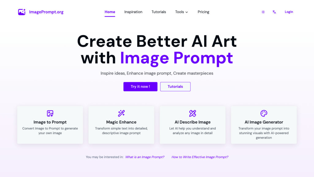 ImagePrompt.org is an advanced AI platform designed to transform user images into rich, descriptive prompts that optimize AI image generation. It supports multiple popular AI models such as Midjourney, Stable Diffusion, and Flux, enabling users to create, analyze, and refine image prompts effortlessly. The platform enhances creativity by simplifying the process of translating visual ideas into actionable text prompts, making it accessible to artists, designers, and content creators alike.