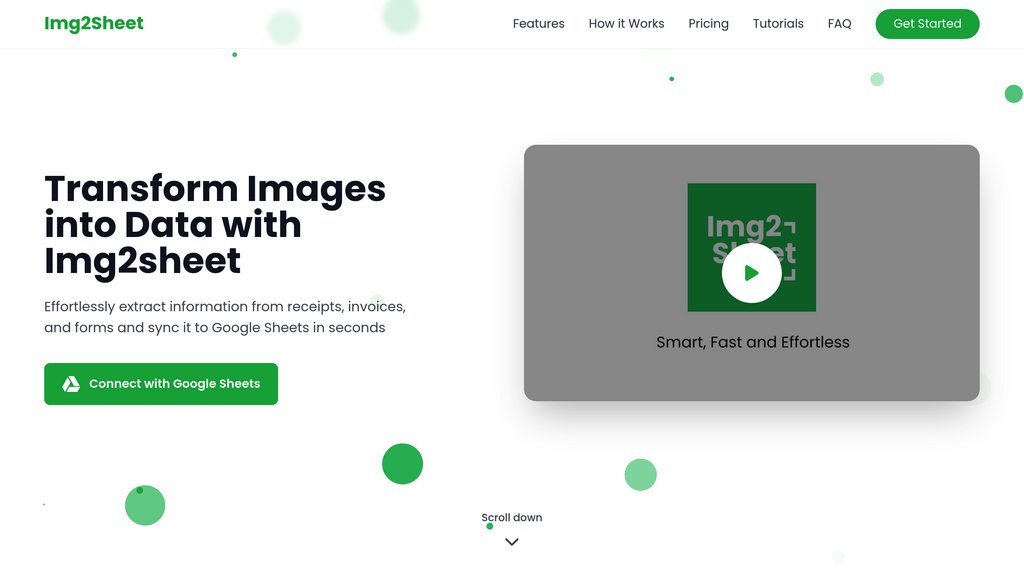 Img2Sheet instantly extracts structured data from images and syncs it directly to Google Sheets, streamlining document management and eliminating manual data entry.