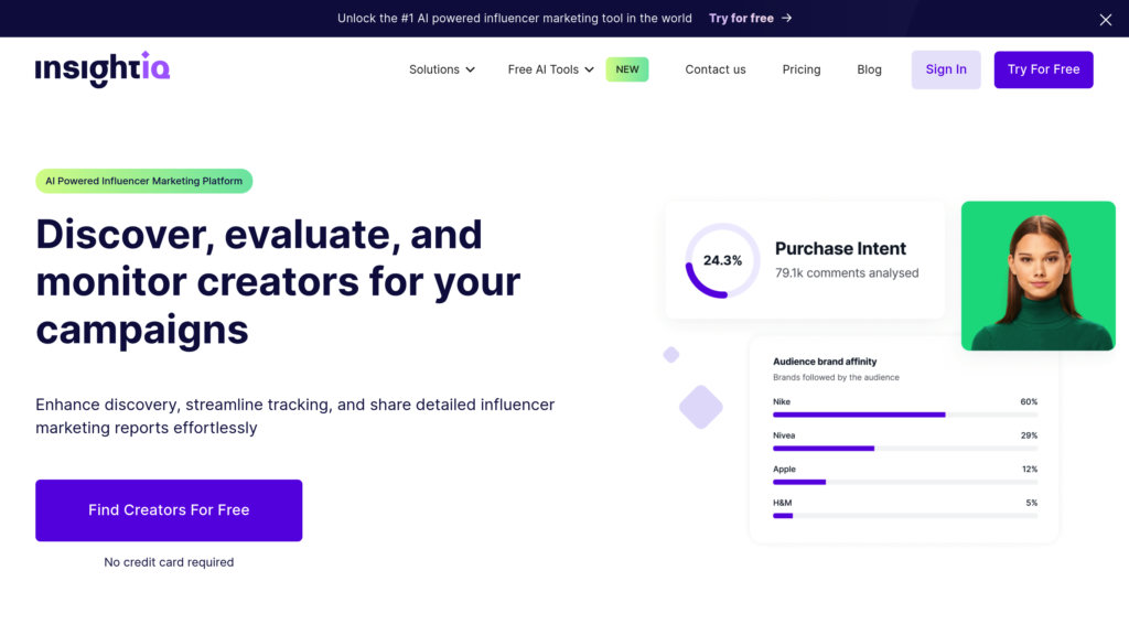 insightIQ is a leading AI-driven social intelligence platform designed to optimize influencer marketing by enabling brands and agencies to discover, evaluate, and monitor influencers across major social media platforms. With access to over 400 million creator profiles spanning Instagram, TikTok, YouTube, Twitter, Twitch, and LinkedIn, insightIQ offers granular audience analytics, real-time campaign tracking, and AI-powered sentiment and brand safety analysis. The platform empowers data-driven influencer partnerships that maximize ROI and streamline influencer marketing workflows through customizable APIs and automation integrations.