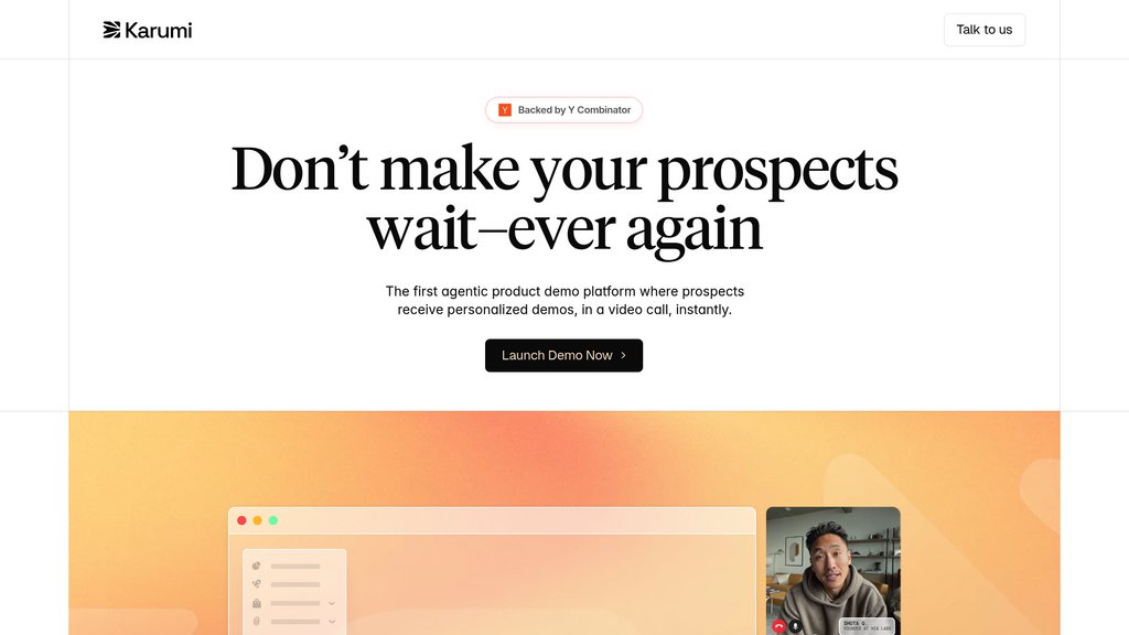 Karumi AI is an intelligent demo platform that deploys AI agents to deliver personalized product demonstrations through live video calls. Available around the clock, Karumi agents join calls initiated from landing pages, in-app prompts, or email links, responding to prospect questions in real-time and adapting presentation flow based on individual needs. The platform captures high-intent leads at critical decision moments without requiring human sales representatives, supporting global audiences through automatic language detection and multilingual interactions. Every demo interaction is automatically logged to CRM systems with transcripts, intent signals, and actionable follow-up recommendations, enabling seamless handoff to sales teams.