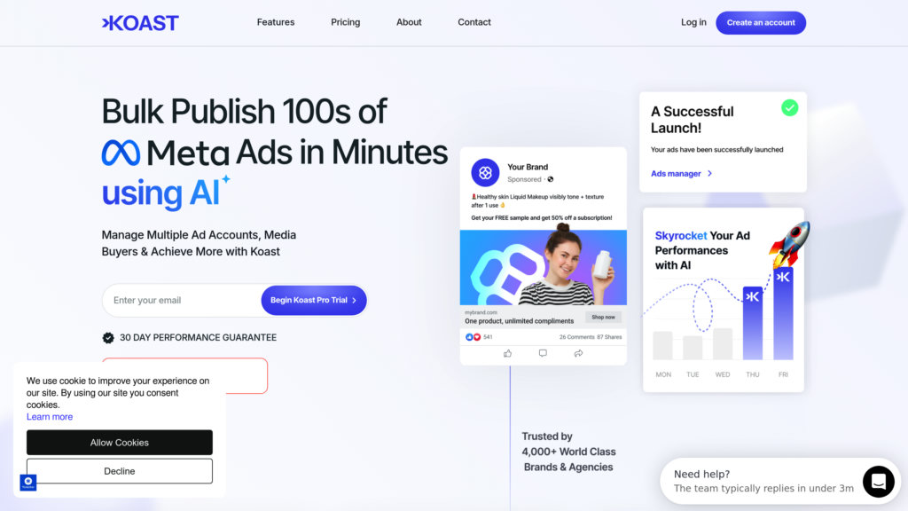 Koast AI is an advanced advertising platform designed to simplify and enhance Meta ad campaigns through artificial intelligence. It enables businesses and agencies to bulk publish ads, automate budget optimization, and manage multiple accounts and teams efficiently. By leveraging machine learning and natural language processing, Koast AI crafts personalized, high-performing ad copy and dynamically adjusts campaigns based on real-time performance data. This results in faster campaign launches, reduced wasted spend, and improved ROI, making it ideal for advertisers seeking scalable, data-driven ad management.