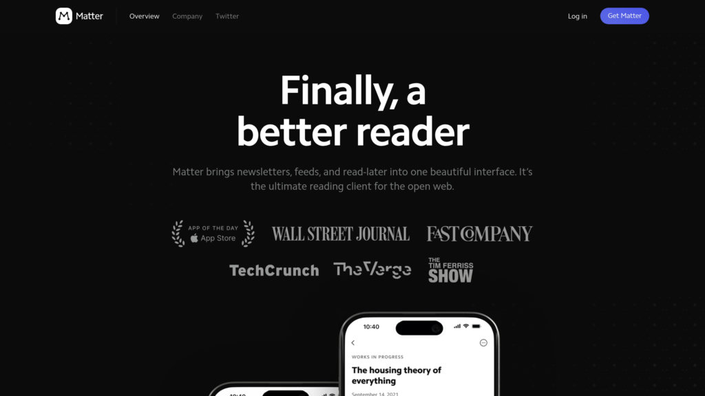 Matter is a powerful reading app designed to bring together all your reading materials—newsletters, blogs, Twitter threads, PDFs, and paywalled articles—into one seamless and beautiful interface. It offers best-in-class parsing technology to deliver a clean, distraction-free reading experience across devices including iPhone, iPad, web, and Kindle. Matter supports offline reading, human-like text-to-speech, fluid highlighting, note-taking, and syncing with popular knowledge management tools like Notion and Obsidian. With a unified inbox, users can connect Gmail to sync newsletters and follow writers, making it the ultimate tool for managing and consuming content from the open web.