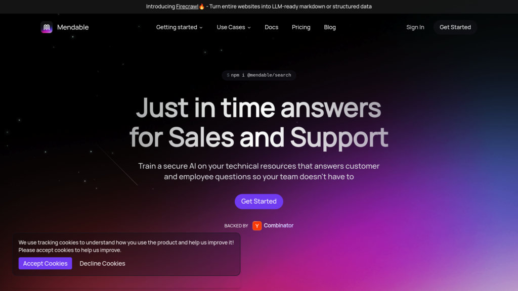 Mendable AI specializes in creating AI chat assistants trained on an organization's technical resources such as documentation, product manuals, and support content. It offers continuous learning through user feedback and correction, ensuring up-to-date and contextually relevant responses. The platform supports multiple base large language models, customizable prompts, and creativity controls, allowing businesses to tailor the AI’s voice and behavior. Mendable integrates easily via APIs and React components, supports multilingual deployment, and provides enterprise-grade security features including SSO, BYOK, and role-based access control. Trusted by startups and Fortune 500 companies alike, Mendable enhances customer support, sales enablement, and product adoption by reducing support tickets and accelerating user self-reliance.