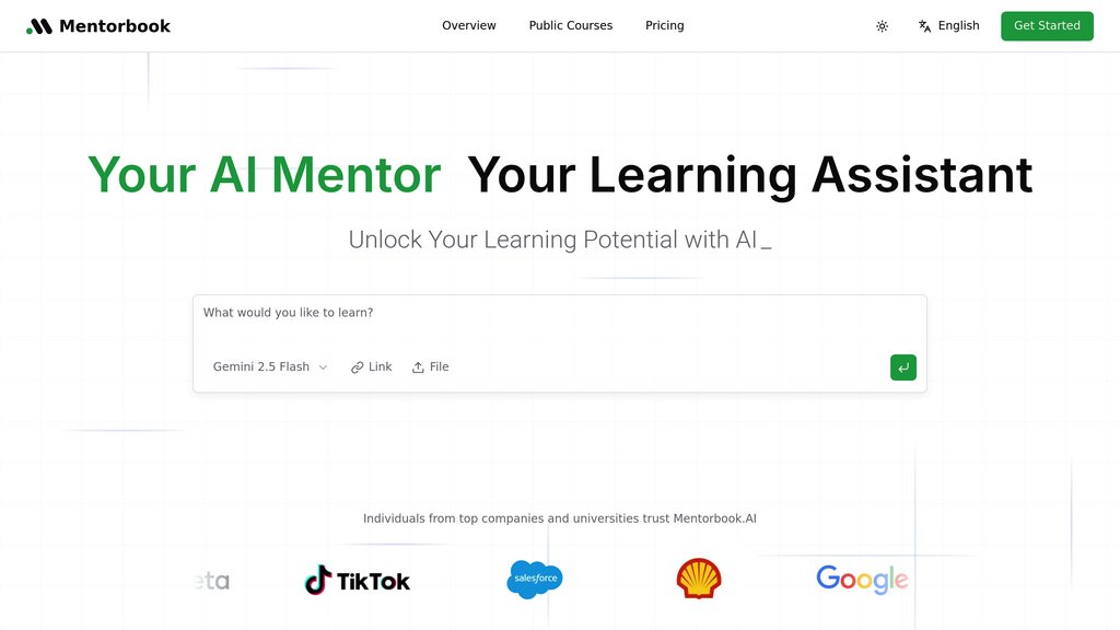 Mentorbook is a comprehensive learning platform that leverages intelligent tutoring systems to provide personalized educational experiences across any subject. The platform adapts to individual learning styles and pace, delivering custom-tailored lessons alongside unlimited practice exercises. With over 10,000 active learners and a 95% success rate, Mentorbook combines interactive lessons, instant feedback mechanisms, and goal-oriented roadmaps to guide learners from foundational knowledge to mastery. The platform's vast curriculum spans more than 100 subjects and topics, making it accessible for beginners while offering depth for advanced learners.
