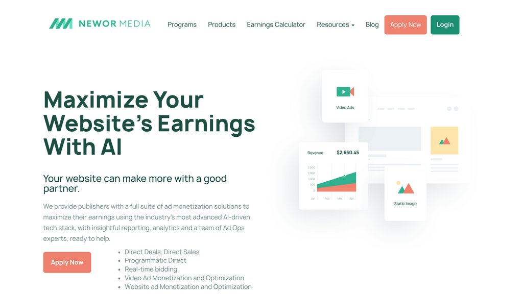 Newor Media is a professional ad management platform designed to help publishers maximize their website earnings through strategic ad placement, advanced real-time bidding, and detailed analytics. It integrates a suite of tools including header bidding, video ad customization, fraud detection, and ad-block revenue recovery to enhance ad performance without compromising user experience. Backed by strong industry partnerships and a dedicated support team, Newor Media offers scalable solutions suitable for publishers of all sizes.