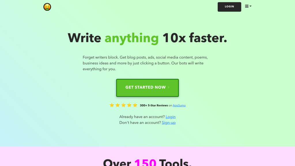 AI-powered content creation platform offering over 150 tools for rapid generation of marketing copy, blog posts, niche ideas, and more.