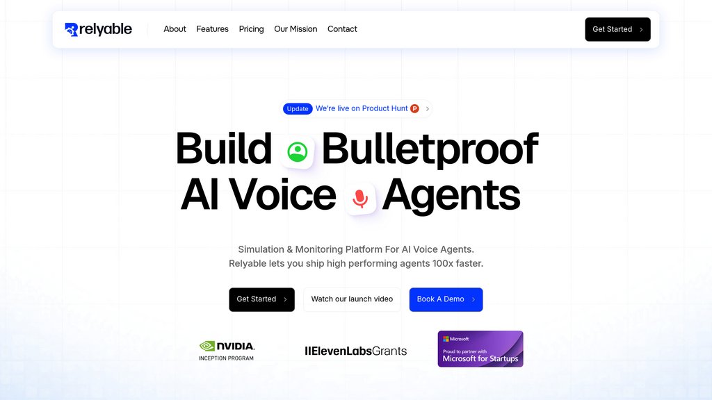 Relyable is a specialized platform designed to accelerate the development and deployment of AI voice agents while ensuring production reliability. The platform provides automated testing capabilities that simulate realistic voice conversations, enabling development teams to identify issues before deployment. Complementing this, Relyable's live monitoring system continuously observes production voice agent interactions, delivering real-time alerts and comprehensive performance analytics. With native integrations into Vapi and Retell AI—two leading voice agent platforms—Relyable enables seamless workflow integration, allowing teams to run thousands of test conversations, analyze conversation quality, and track success metrics without manual intervention.