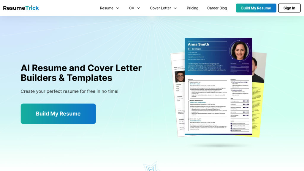 Resume Trick is an AI-driven online platform designed to simplify the creation of professional resumes, CVs, and cover letters. It offers a user-friendly interface with a variety of customizable, ATS-friendly templates and AI-generated content suggestions tailored to specific industries and job roles. The platform enables users to efficiently build, manage, and update their application documents from any device, supporting downloads in PDF and TXT formats. Resume Trick serves job seekers ranging from recent graduates to experienced professionals, aiming to enhance their chances of landing interviews by providing targeted, well-formatted resumes and cover letters.
