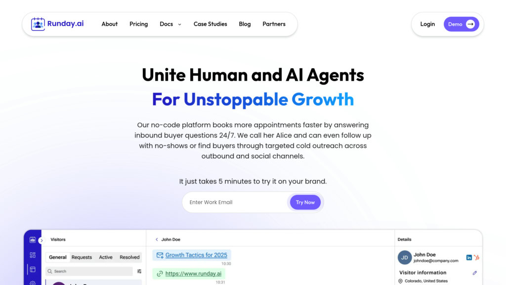 Runday.ai streamlines sales and customer engagement by automating appointment booking and buyer interactions. Its AI agent, named Alice, handles inbound inquiries 24/7, follows up on no-shows, and conducts targeted outreach via social and outbound channels. The platform integrates seamlessly with calendars and CRM systems to optimize scheduling across time zones and reduce manual workload. Customizable AI agents can be built quickly using simple spreadsheet scripts and existing company content, enabling businesses to scale sales efforts without expanding their teams.