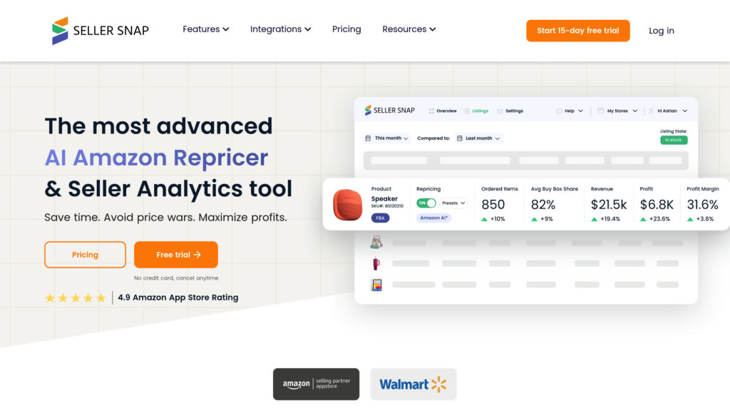 - Multi-Channel Selling : Supports multi-platform integration, enabling sellers to manage and optimize listings across Amazon and Walmart.
