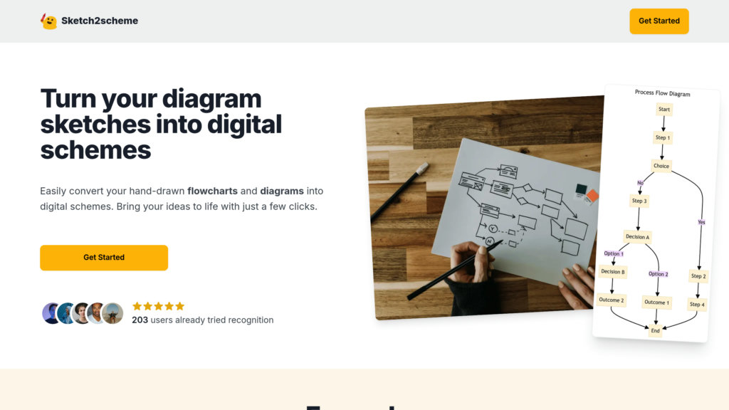 AI-powered tool that converts hand-drawn flowcharts and diagrams into neatly arranged digital schemes with editable outputs.