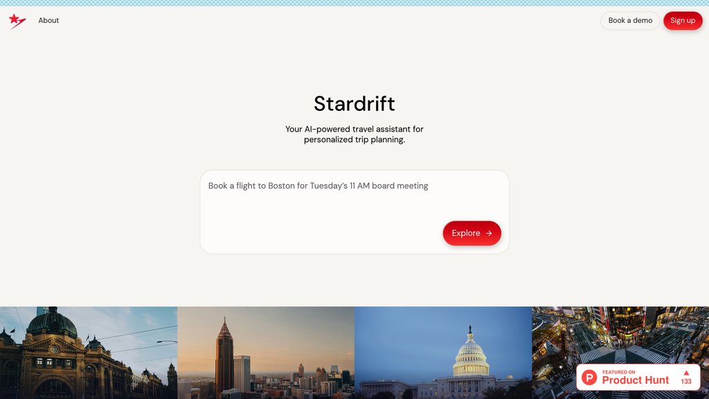 Stardrift is a personalized travel assistant that streamlines the entire trip planning process by combining calendar integration with intelligent preference learning. Rather than navigating multiple booking platforms, users input their travel requirements through natural conversation and receive curated options for flights, rail routes, and accommodations that align with their budget, schedule, and personal preferences. The platform automatically syncs with calendar systems like Google Calendar and Outlook, ensuring travel plans never conflict with meetings or existing commitments. By learning individual preferences such as preferred airlines, seat selections, hotel amenities, and departure times, Stardrift eliminates repetitive data entry and delivers personalized recommendations that improve with each interaction.