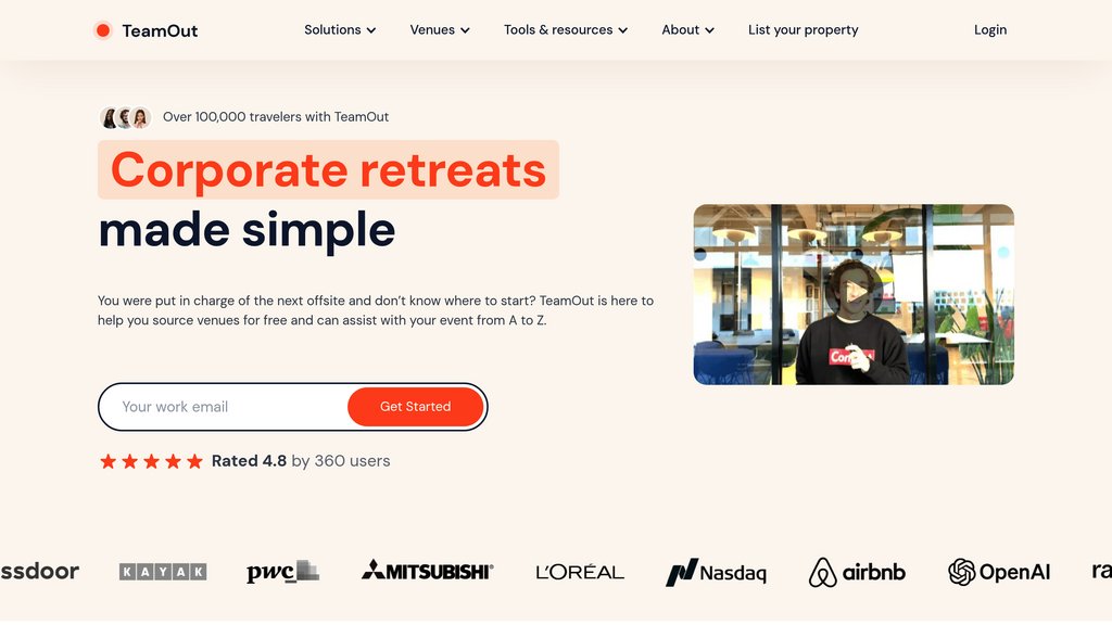 End-to-end corporate retreat platform connecting businesses with 4,000+ curated venues and providing comprehensive event planning services with up to 30% cost savings.