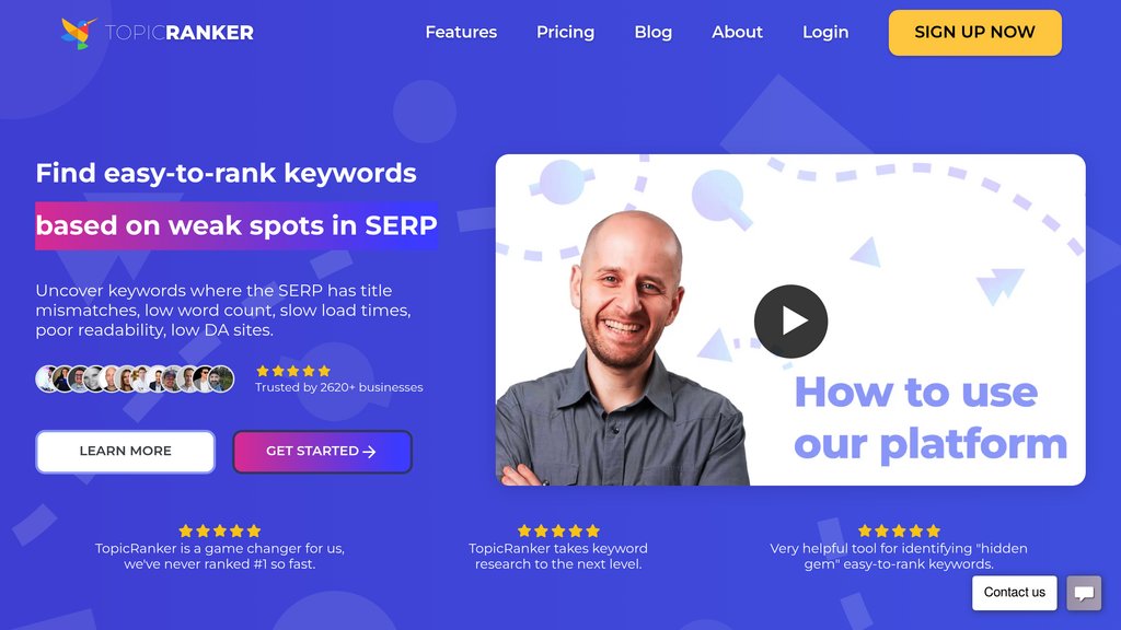 TopicRanker is an SEO tool designed to help users discover high-potential keywords by examining the top 10 search results for specific weaknesses. Unlike traditional keyword difficulty metrics, it focuses on real gaps such as thin content, outdated pages, poor readability, and slow load times. The platform also provides AI-assisted content creation tools to streamline the production of optimized articles, including title generation, content briefs, and meta descriptions. Its mission is to empower content creators to outrank competitors by targeting under-optimized SERPs with actionable insights.