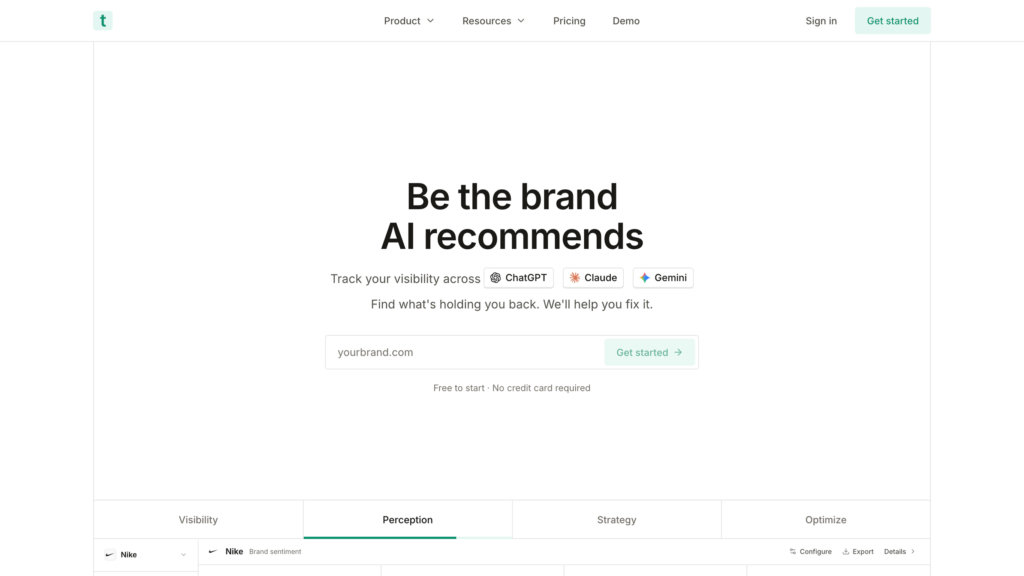 Trakkr is a brand monitoring platform designed for the era of AI-driven search and recommendations. It tracks how frequently and prominently your brand appears when major AI language models respond to industry-relevant queries. Unlike traditional search engine optimization that focuses on Google rankings, Trakkr provides visibility into how AI systems like ChatGPT, Claude, Gemini, and others perceive and rank your brand. The platform automatically generates prompts related to your industry, queries major AI models daily, and measures both how often your brand is mentioned and how prominently it appears in responses. This enables brands and agencies to understand their competitive positioning within AI ecosystems and optimize their strategy accordingly.