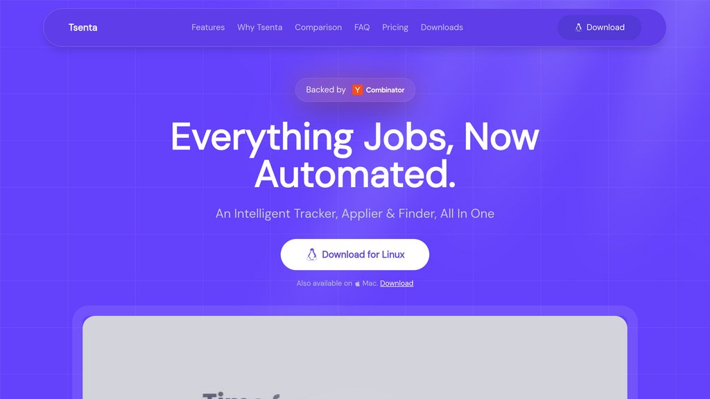 Tsenta is a YC-backed desktop application designed to eliminate the manual grind of job hunting. Unlike cloud-based tools that operate as black boxes, Tsenta runs entirely on the user's device, automating the full application workflow — from login to final submission — while displaying every action live on screen. It covers job discovery through personalized recommendations and a curated board, optimizes resumes for each specific job to pass ATS filters, and handles complex multi-page forms including open-ended questions. With a free tier and a $9.99/month Pro plan, it targets students and job seekers who need volume without sacrificing control or privacy.