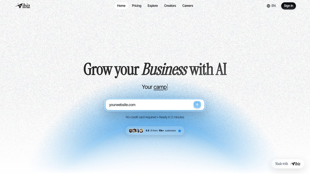 Vibiz is the first Vibe Business Platform — an autonomous marketing agent built for solopreneurs, startups, and small businesses. It takes ownership of the entire marketing funnel: scanning your website to extract brand identity, then automatically generating on-brand landing pages, ad copy, and campaign creatives. Rather than assisting with individual tasks, Vibiz operates end-to-end — from strategy to lead capture — eliminating the need for multiple tools or a dedicated marketing team. It supports businesses across e-commerce, SaaS, services, and personal brands.
