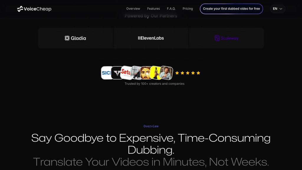 VoiceCheap is a video dubbing and translation platform built for content creators, marketers, and businesses looking to reach global audiences without the cost or complexity of traditional dubbing. Using its proprietary SmartSync technology, the platform translates videos into 70+ languages with voice cloning and automatic lip-sync. Users can import videos from YouTube, social media, or local storage, and export or schedule the dubbed output directly to publishing platforms. Subscription plans scale from individual creators to enterprise teams, with a minute-based credit system for flexible usage.