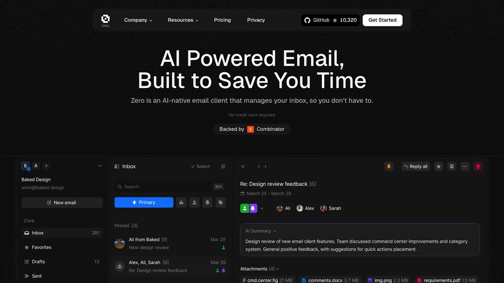 Zero is an open-source, AI-native email client designed to transform how professionals interact with email. Rather than imposing a new interface, Zero embeds AI as a core function throughout your email workflow, enabling intelligent inbox management, rapid response composition, and seamless email organization. Supporting both Gmail and Outlook, Zero provides a unified inbox experience with advanced automation capabilities while maintaining transparency and user control through its fully open-source architecture.