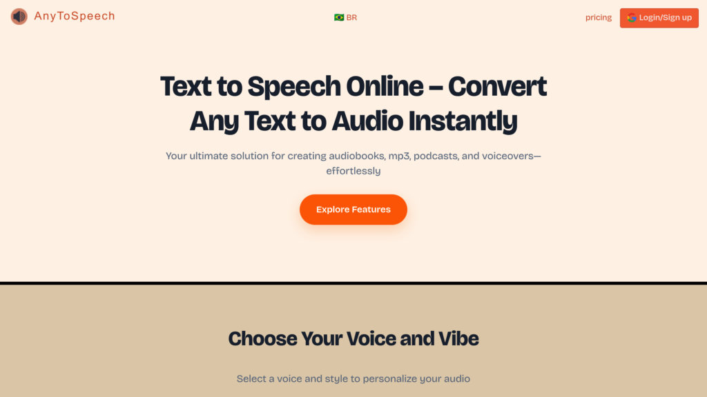 AnyToSpeech 是多功能 AI 智能代理文字轉語音平台,能將純文字、PDF、文件、文章等內容轉換為高品質、自然語音。支援多種旁白人員及英語口音(如美式、英式、印度、澳洲),讓用戶自訂音訊輸出。平台操作簡便,提供一鍵轉換及彈性付款(一次購買或訂閱)。無論一般用戶或專業人士,皆可高效製作有聲書、Podcast、配音及無障礙音訊內容。