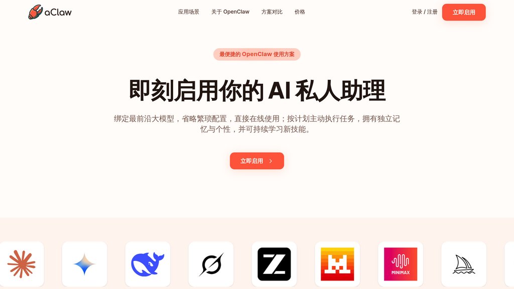 aClaw是基于OpenClaw的AI Agent最便捷的部署解决方案。与简单的聊天机器人不同,OpenClaw Agent拥有独立的运行时环境、持续记忆和真实执行能力——它可以浏览网页、填写表单、监控信息,并按计划主动联系用户。aClaw通过云端托管消除了复杂的本地设置需求,让用户绑定首选的前沿模型,通过熟悉的消息应用或aClaw自有的在线界面立即开始工作。该平台支持广泛的工作流程,从办公自动化和社交媒体管理到研究和市场监控。