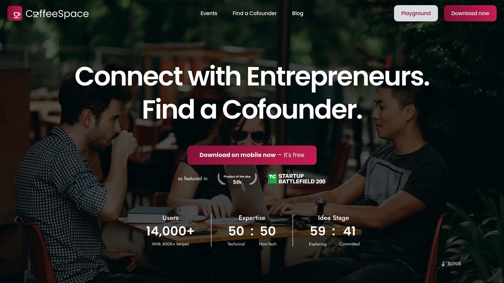 CoffeeSpace是一个专门设计用于帮助创业者发现并连接潜在联合创始人和早期合作者的匹配平台。受流行约会应用的启发,它结合了基于滑动的界面、深思熟虑的提示和精细的筛选条件,突出展示个性、工作风格以及超越传统简历的专业兼容性。该平台强调双向兼容性,确保匹配满足相互标准以增加成功合作的可能性。CoffeeSpace还支持早期招聘和人才发现的持续人脉建设,使其成为创业者整个创业旅程中的动态工具。
