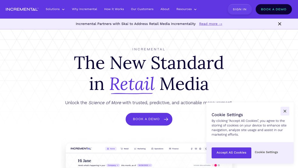 - 零售媒体优化 : 零售媒体购买者使用Incremental来识别哪些活动真正推动增量销售,并优化跨零售网络的支出。